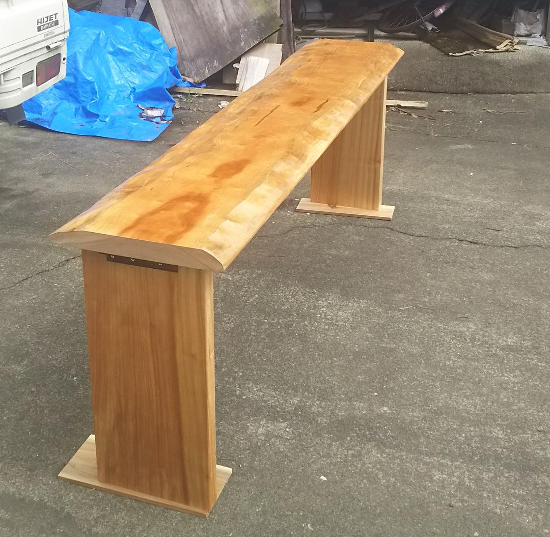 ウォールナット塗装したカウンターテーブルです。植物を飾るシェルフにも使えます。無垢材ですので木目が生かされており高級感がでています。サイズの大きなものまで対応できますので、オーダーメイドでご依頼ください。現状のサイズであればこのまま購入いただいてかまいません。脚はアイアンポールになります。#パソコンテーブル#ウォールナット#コーヒーテーブル#センターテーブル#観葉植物#エアプランツ#アンティーク#コーヒーテーブル#無垢材#カフェ風#カウンターテーブル#ダイニングテーブルサイズは182✕45✕71(高さ) ※ 手作り品、天然素材ですのでそれぞれのそりや筋や欠けがある場合や木目の味わいの違いがあることをご了承ください。繋ぎ目の段差はご了承ください。送料を少しでも抑えお安くする為、また、収納にも優れるよう、脚部はネジでの組み立て式となっております、その為天板と脚部はバラしての発送となります。
