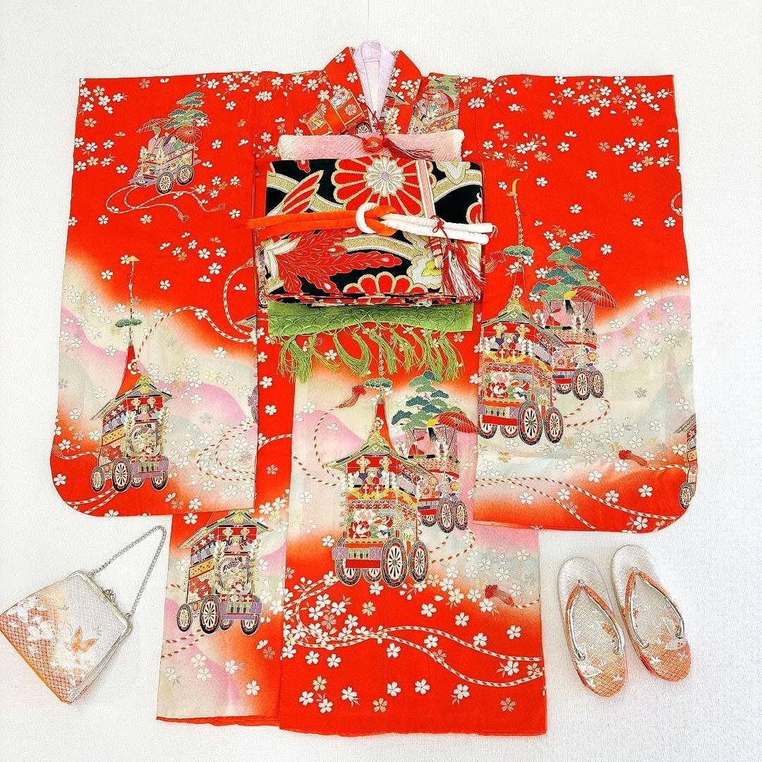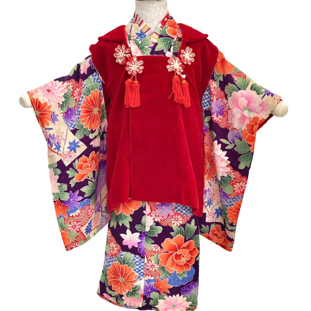 ご覧いただきありがとうございます。コレクションしていた七五三のお着物を少しずつ出品していきます。#七五三一覧*ビビ被布は一昨年、伊勢丹で3万3千円で購入した正絹総絞り被布です。新品未使用品です。百貨店だけあって、絞りの質がとてもいいです。色味も人気の赤で、発色も綺麗です。綿も入っていてふっくらしています。お店で肩上げだけしてもらってありますが、結局実家にあった被布を使うことになったのでこちらは未使用です。とてもお買い得かと思います。お着物は金駒刺繍がされており、毱に蝶や御所車と、とても華やかで可愛らしいです。正絹です。汚れなどなく美品です。前撮りなどの際のお顔写りも良いと思います。撮影映えのするお着物です。セット内容・着物・被布・襦袢(半衿付きです。着物と一緒にあつらえたものなのでサイズもぴったりです)・草履(中古19㎝、交換可)・巾着(正絹)身丈約95㎝裄約49㎝画像の追加や、質問などあればお気軽にどうぞ。不明な点は必ずご購入前にご確認ください。※撮影の際、個人的に床にお着物を置くのが抵抗があるので、撮影用のクッションマットの上に置いています。綺麗な状態で撮影していますので、ご安心くださいませ。※シミや汚れなど見落としがないよう確認しておりますが、細かいものなどは見逃してしまう可能性があります。また、着物や帯の内側・裏側などの見えない部分や、襦袢の汚れについては記載していません。細かなところまで気になる方は購入前にコメントでご確認くださるか、ご購入をお控えください。中古品・自宅保管にご理解ある方よろしくお願いします。七五三七歳3歳三才3才着物帯レトロ アンティークひな祭りひなまつり雛祭りお雛様おひなさまパーティー前撮り撮影お宮参りお祝い着女の子正絹総絞り赤絞りしぼり松屋百貨店デパート年齢···3歳