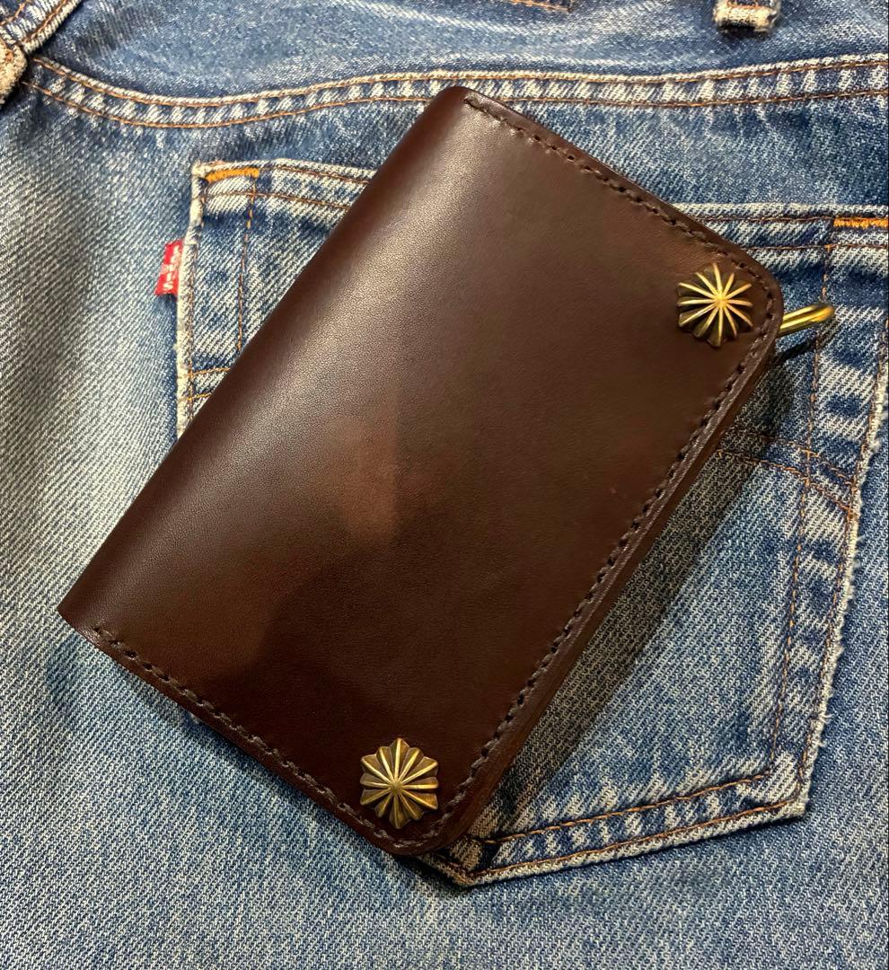 トラッカーウォレットになります!革のお店でサイズや形、その他色々、1からフルオーダーで作って貰いました!とても気にってたのですが欲しい形の財布が出来たので出品します!コンパクトサイズでいい感じに味が出てて凄い使いやすいと思います!